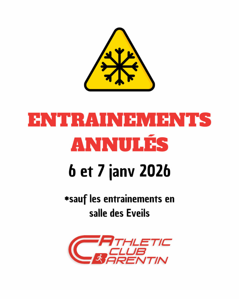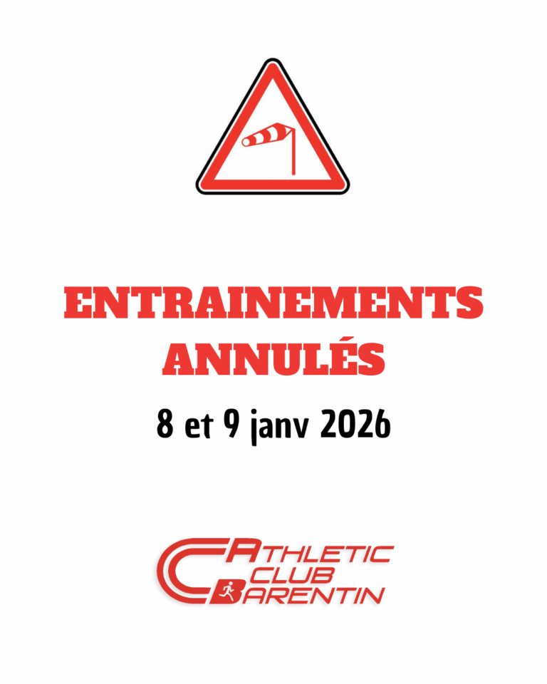 ENTRAINEMENTS ANNULES : jeudi 8 et vendredi 9 janvier 2026 en raison du vent et de la tempête ⚠️