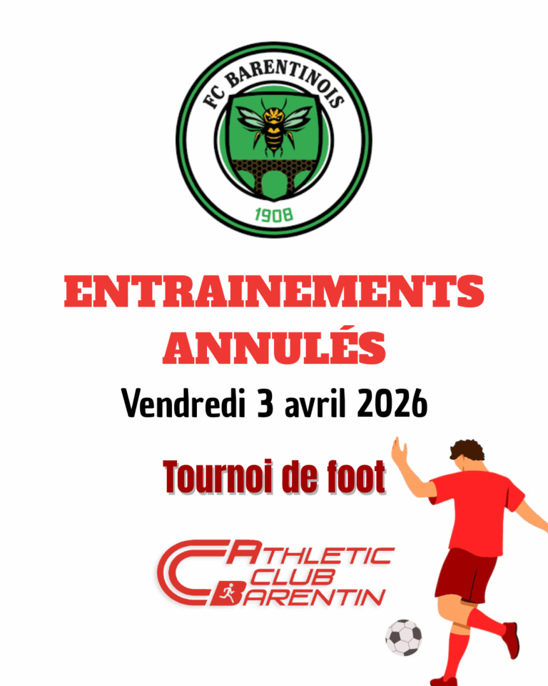 ENTRAINEMENT ANNULE : vendredi 3 avril 2026 en raison d’un tournoi de foot⚠️