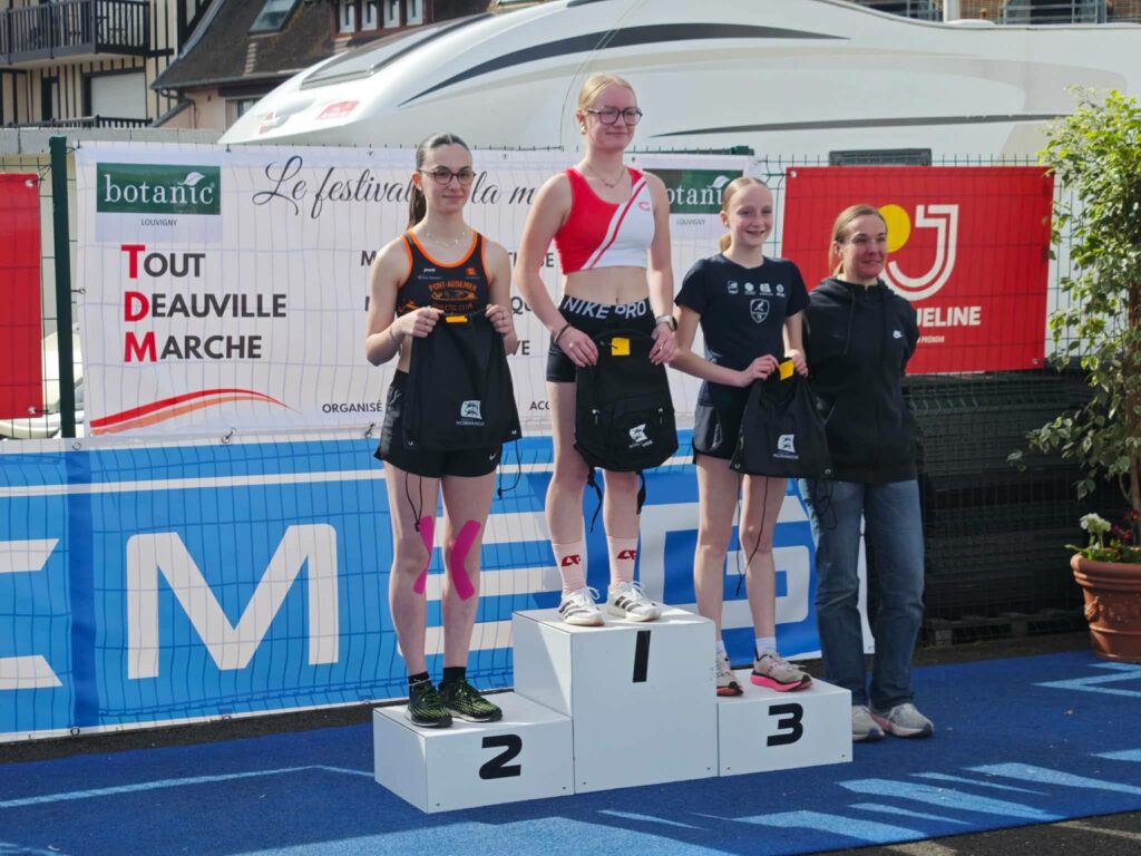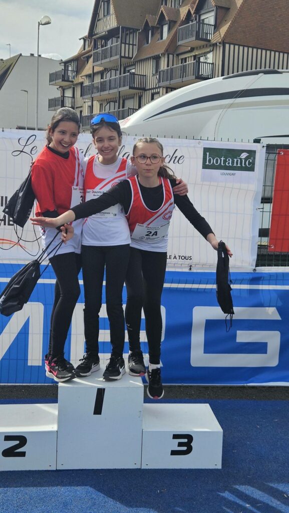 – Ensuite places Ă  nos 3 poussines Tess, Hilda et Cassandre qui Ă©taient engagĂ©es sur un relais 2x400m marche. Tess et Cassandre Ă©taient ensemble et Hilda Ă©tait en binĂ´me avec une autre athlète de Caen AC. Sur 5 Ă©quipes Tess et Cassandre remporte l’Ă©preuve 🥇​ et Hilda fini 3ème 🥉​. Une belle expĂ©rience pour nos 3 jeunes pousses qui se sont bien amusĂ©es avant, pendant et après leur Ă©preuve.