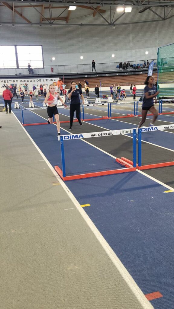 Livia ACARD (BEF) court le 50m en 8″03, le 50m haies en 10″34 et la longueur avec 3m26.