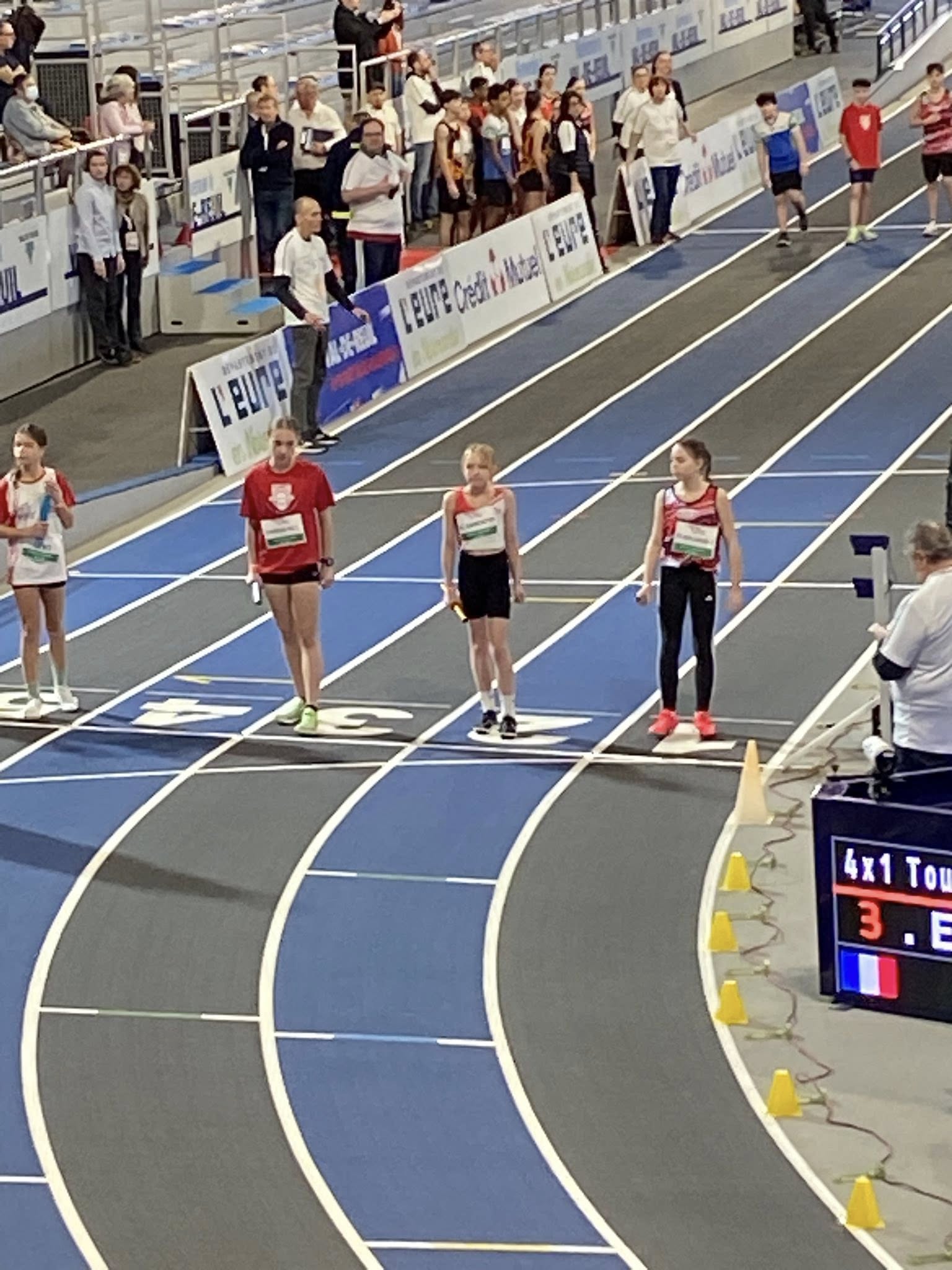 La soirée a débuté avec la team de relais mixte 4×1 tour (200m) benjamins/minimes avec Livia, Lymeo, Maheline et Augustin, accompagné de Jordan, ils terminent à une belle 3ème place.
